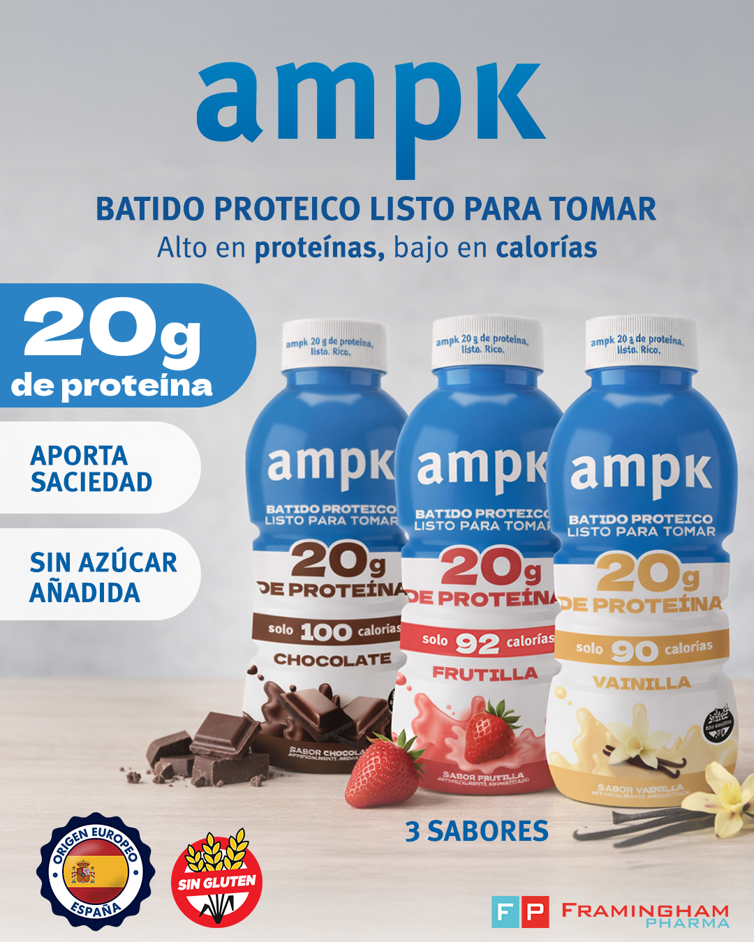 - Cada botella aporta 20 g de proteína con menos de 100 calorías